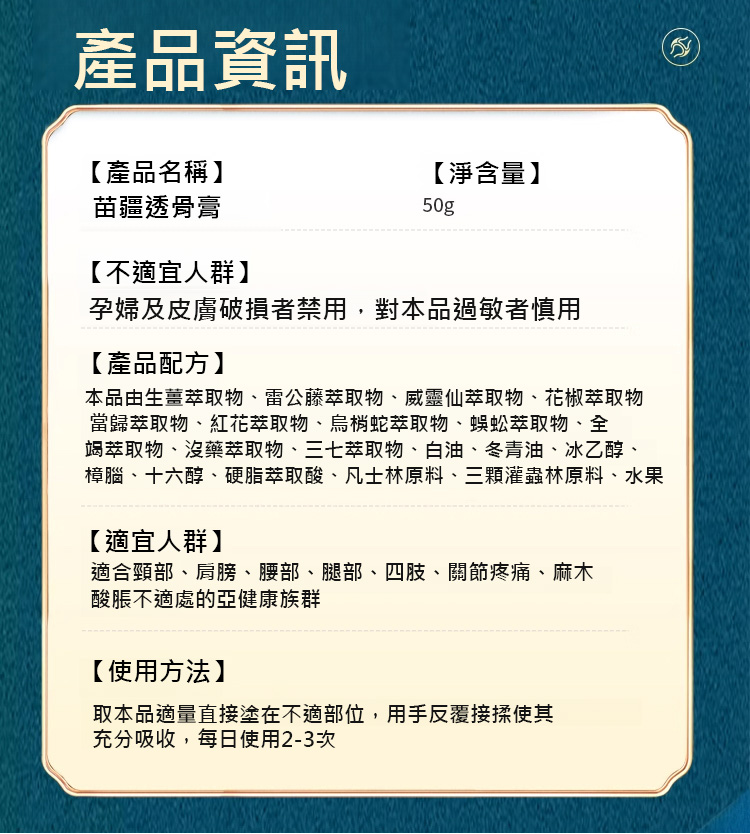 【苗疆透骨膏】苗方傳承古法煉製,草本萃取溫和滲透,1 抹快速緩解肩頸腰腿等關節疼痛、酸脹。 50g 大容量,適配多部位不適