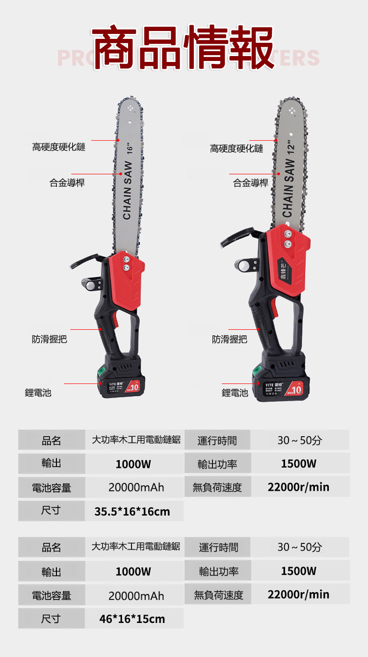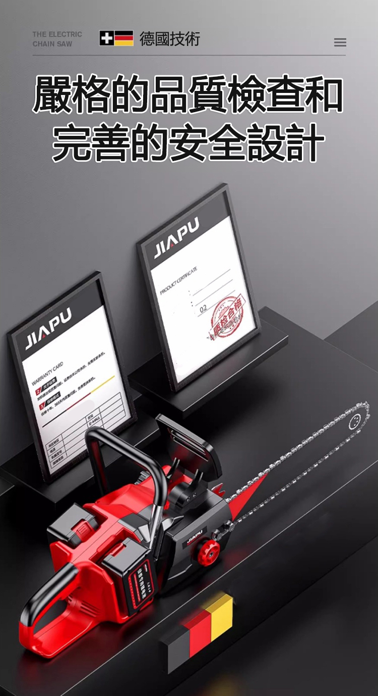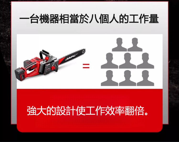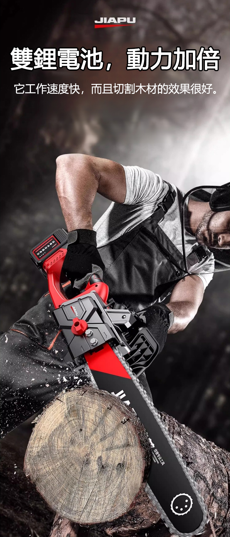 台灣爆款大功率電鏈鋸!德國技術升級,無刷全銅電機最大 9880W 功率,15 秒砍倒 70cm 樹木。雙 20000mAh 鋰電池續航 30-50 分,进口金鏈抗震耐磨,合金導桿 + 防滑握把操作省力