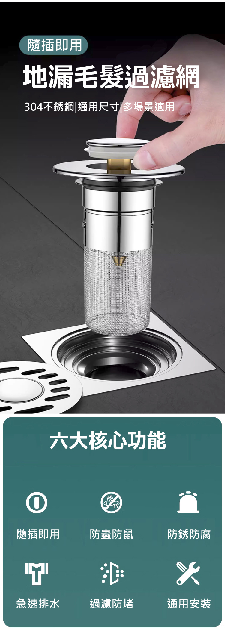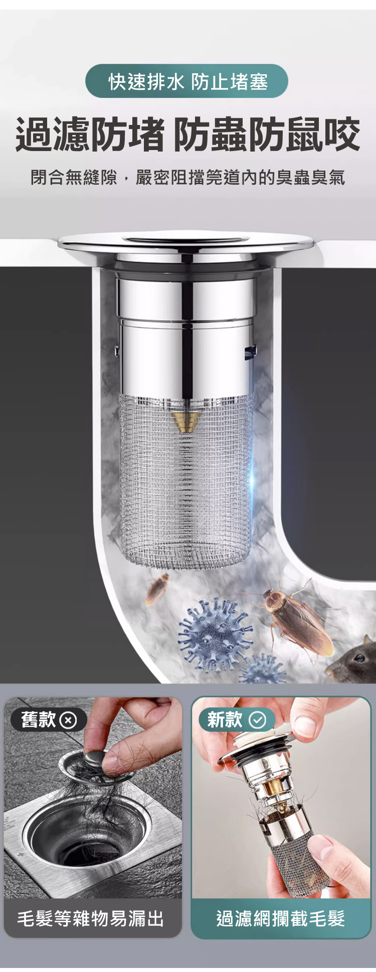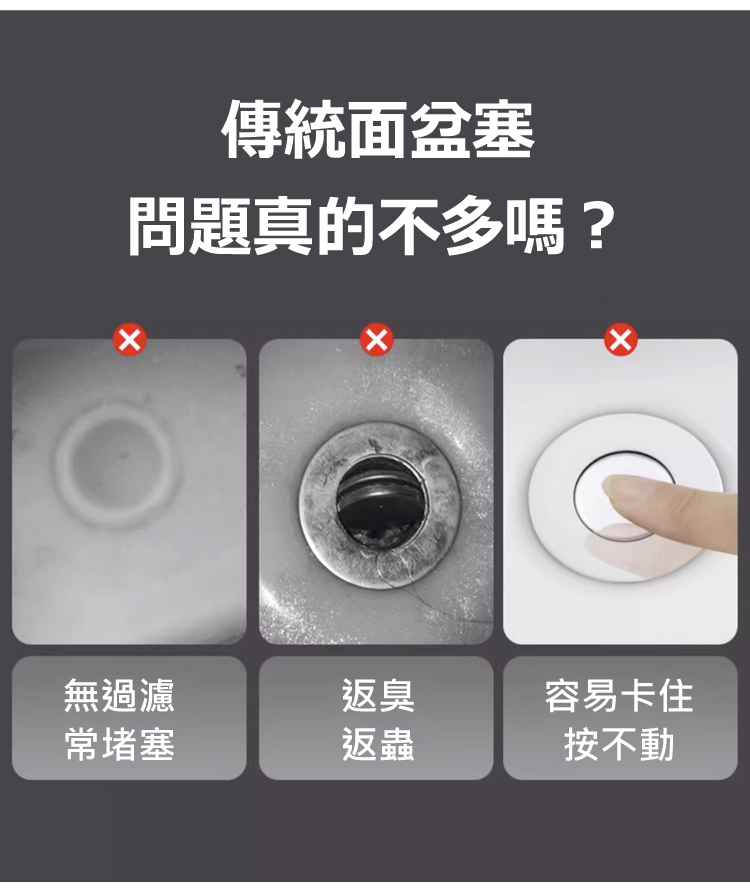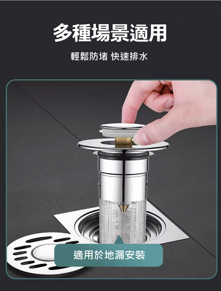台灣熱銷 8 萬 +!家居防臭防堵萬能彈跳芯,304 不鏽鋼外殼 + 食品級硅膠密封圈,防臭率 99%、隔絕蟲鼠無死角,加密濾網精准攔截毛髮防堵塞。免工具 5 秒快裝,面盆、水槽通用,可拆卸清洗不髒手。20 年耐用不易損
