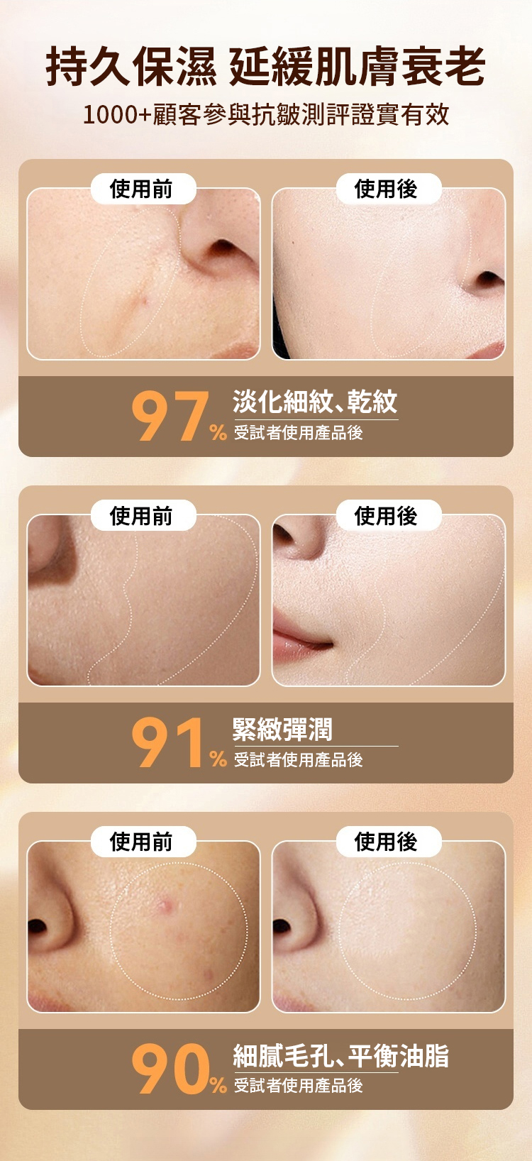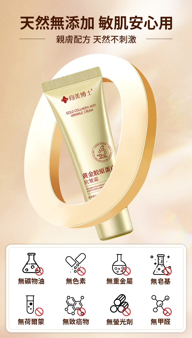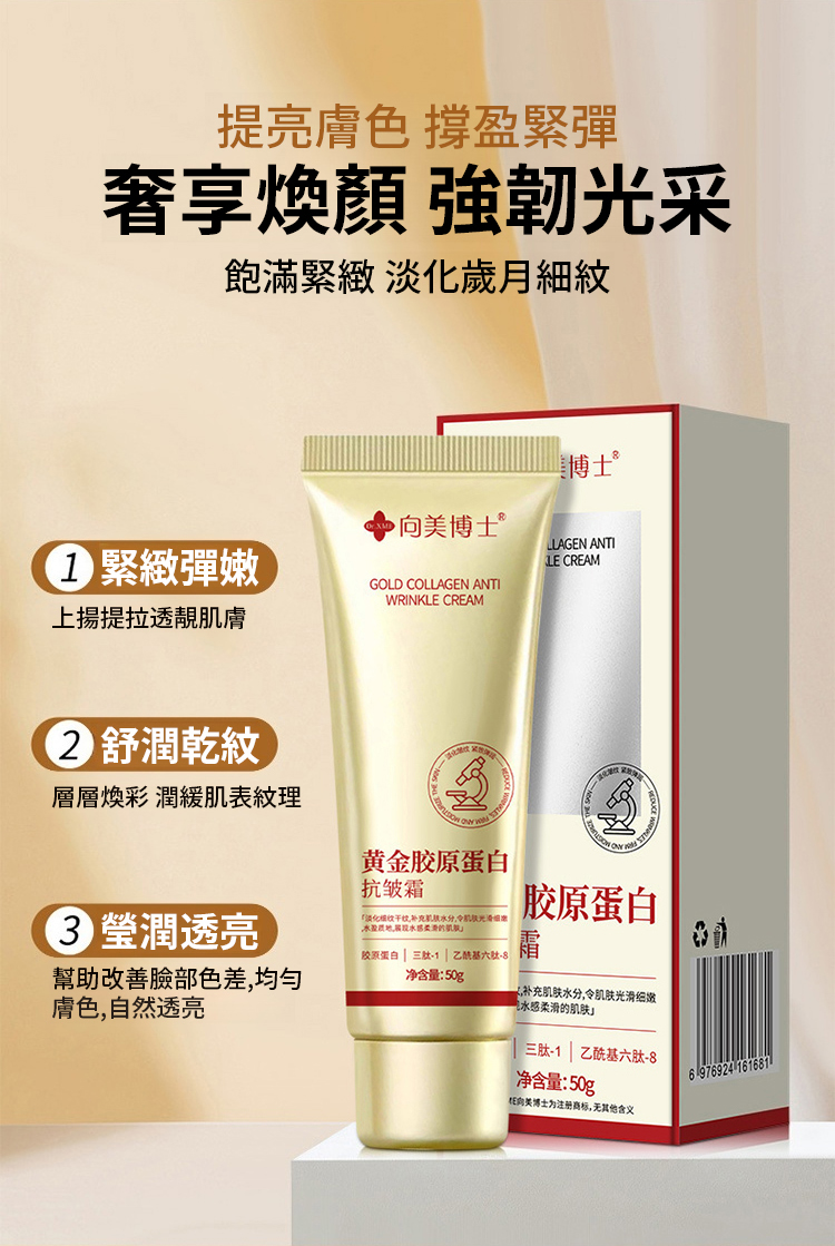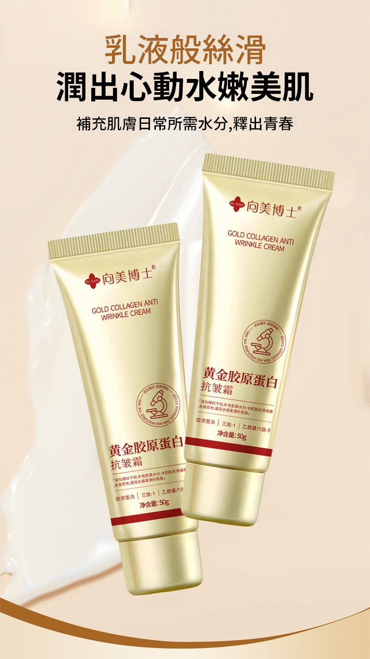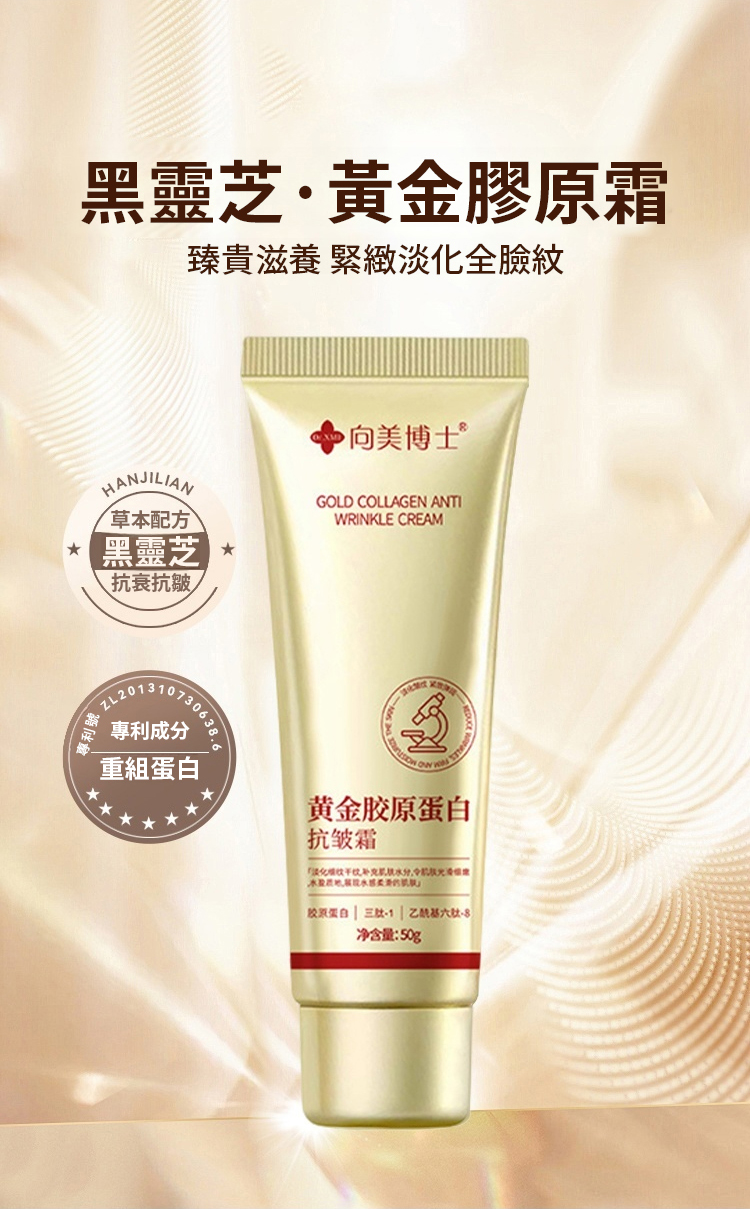台灣 30 天爆賣 29.8 萬 +!向美博士黃金膠原蛋白抗皺霜,含黑靈芝、三肽 - 1、乙醯基六肽 - 8 等核心成分,撫平八大皺紋。97% 淡化細紋、91% 緊緻彈潤,無添加敏肌適用,補水保濕還提亮