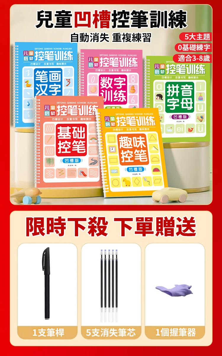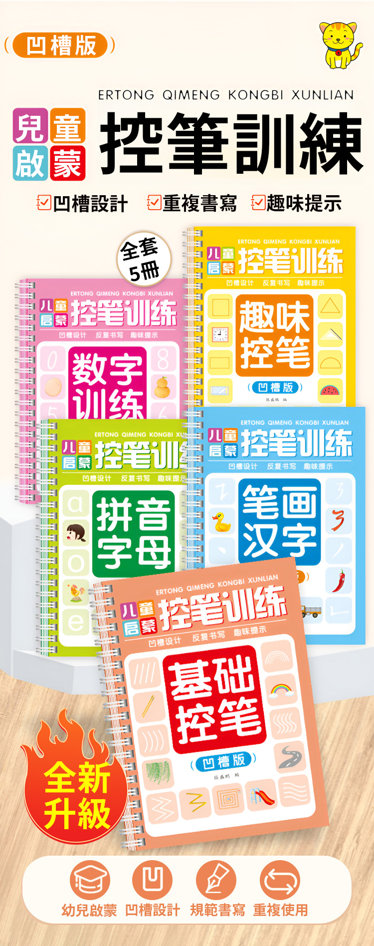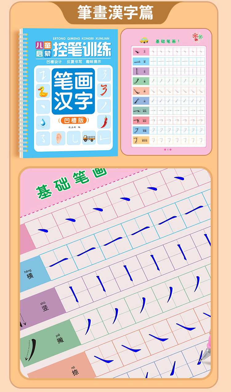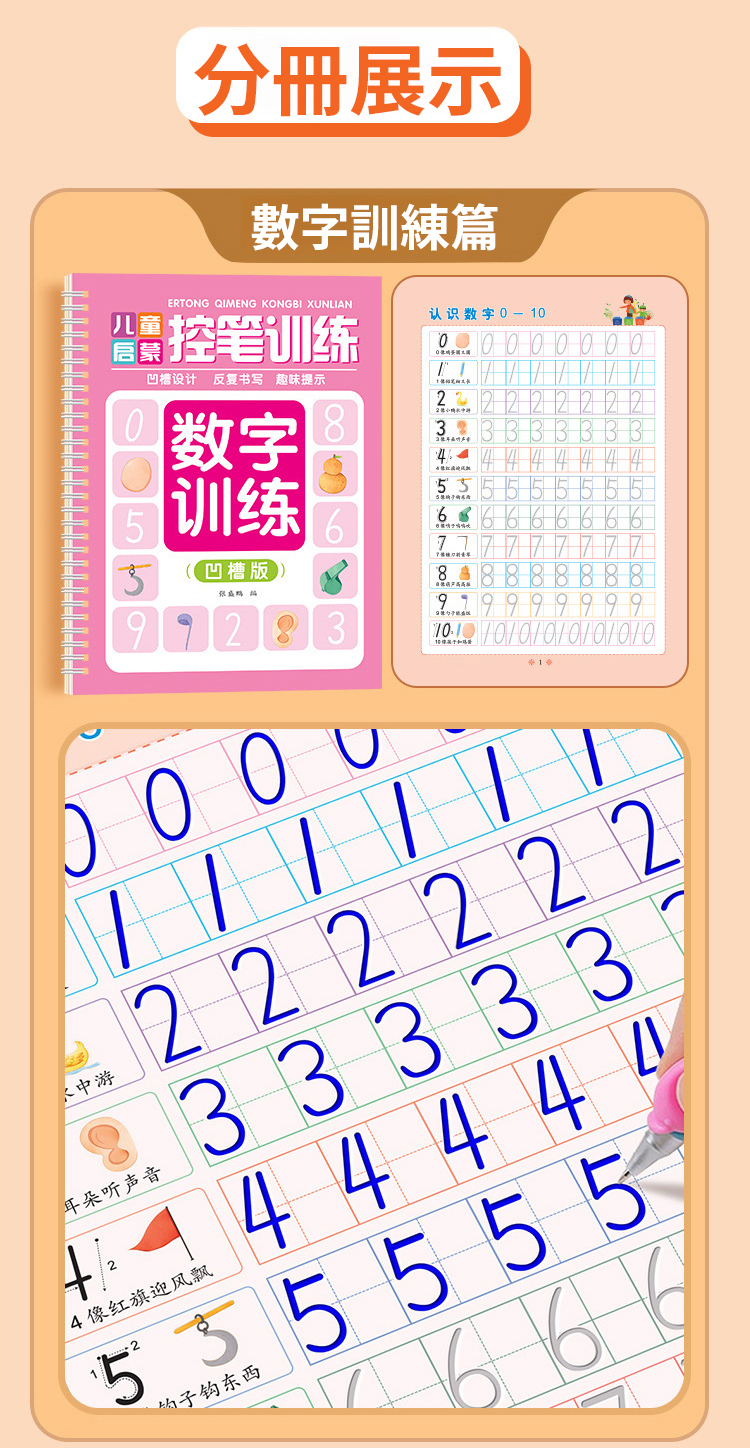 【兒童魔法練字帖】孩子越練越聰明!比同齡孩子都聰明! 3-8歲兒童凹槽控筆訓練,趣味學習可重複使用!